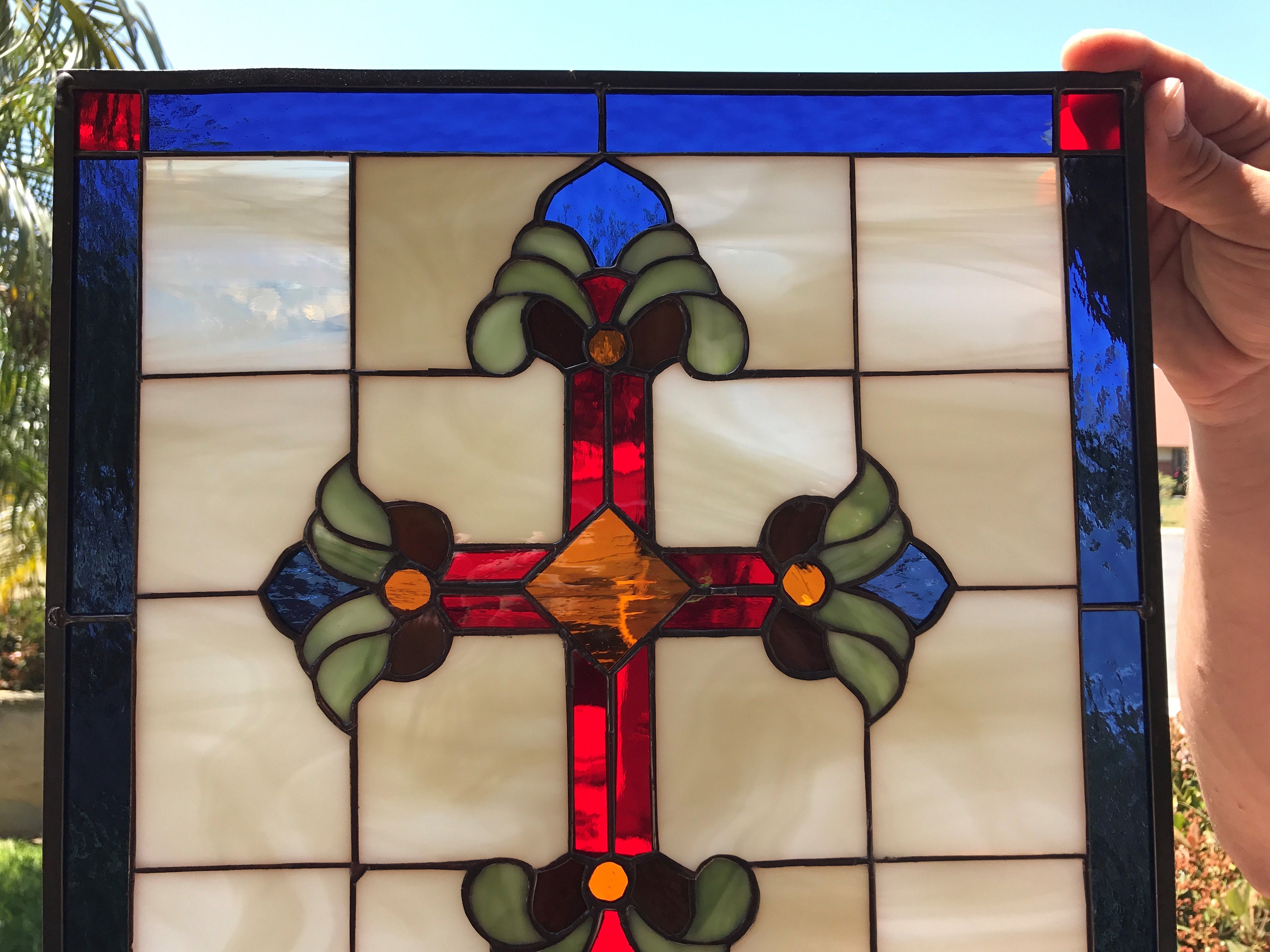 Beautiful Cross Leaded Stained Glass Window Panel Hangings Etsy